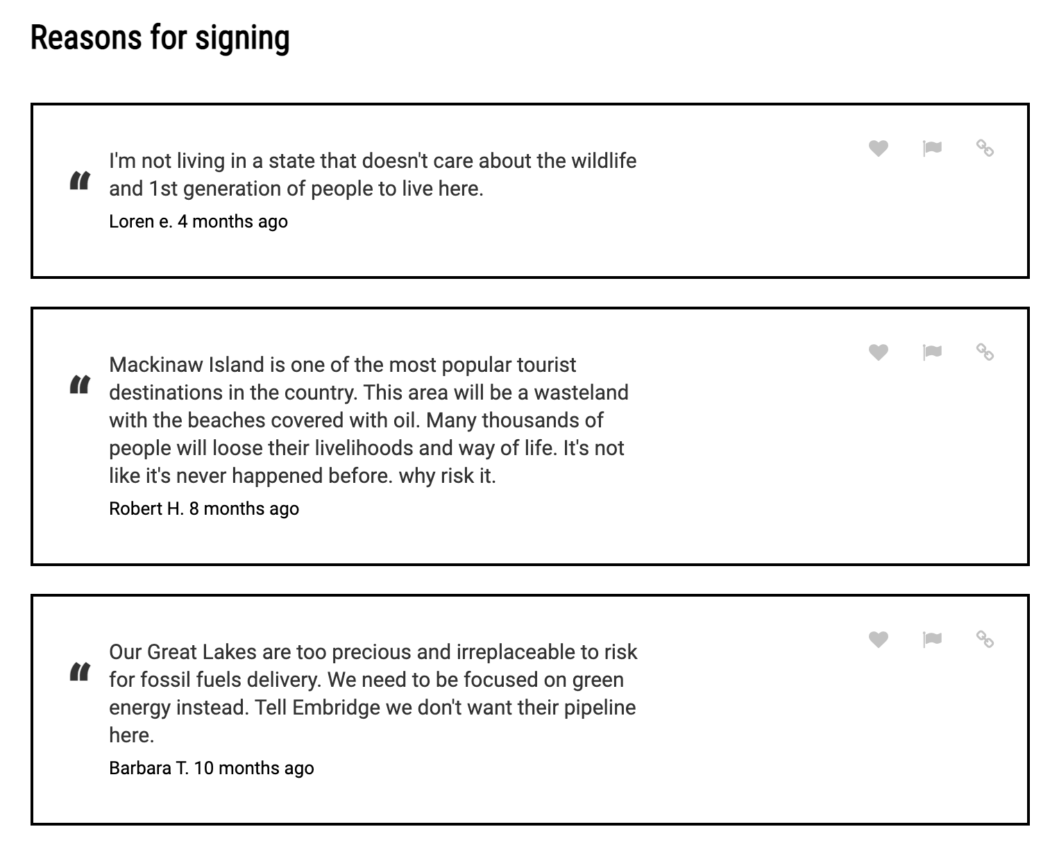 Two 62-year old oil pipelines are threatening the Great Lakes. Called Line 5, owned by Enbridge, a Canadian energy company, they carry 23-million gallons of crude oil daily. It passes between the state's upper and lower peninsulas along the bottom of the Straits of Mackinaw. Oil and water don't mix, and if they were to rupture, they would spill oil across the Great Lakes. Please act now and make Enbridge shut the pipeline down. Please do whatever you can. Thank you
